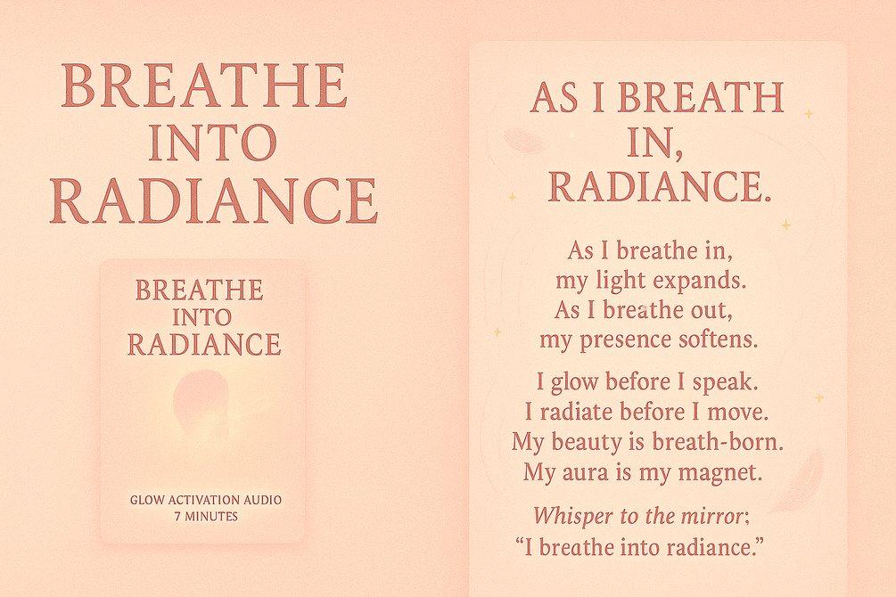 Breathe into Radiance is a 7-minute guided ritual designed to activate your subtle aura through intentional breath — illuminating your presence, refining your feminine frequency, and softening the field around you.